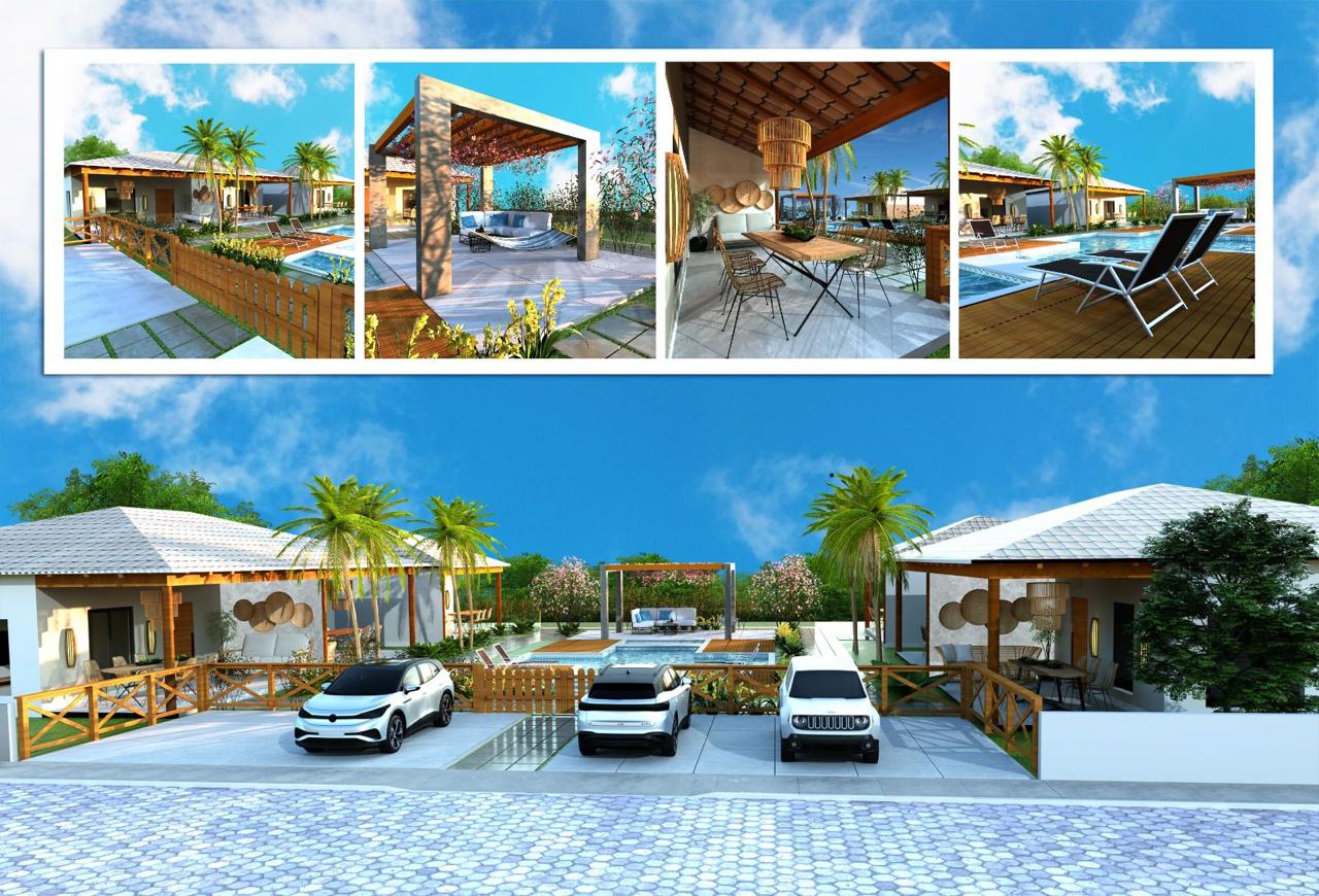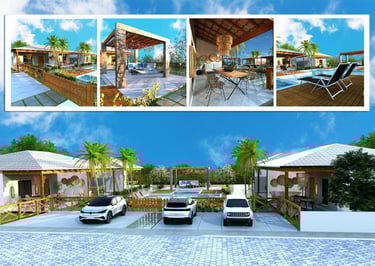 São bangalôs de 56m2 e casas de 74m2 ao longo de um terreno de 1200 m2 para os melhores momentos a sua família.